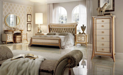 Ložnice obsahuje postel s čalouněním, komoda vysoká, noční stolek 2 ks, toaletka, zrcadlo.