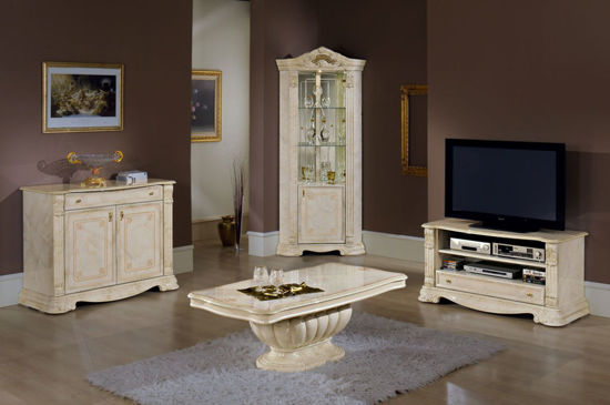 Sestava Elizabeth 12 obsahuje - vitrína rohová, komoda 2v., stůl konferenční, tv skříňka.